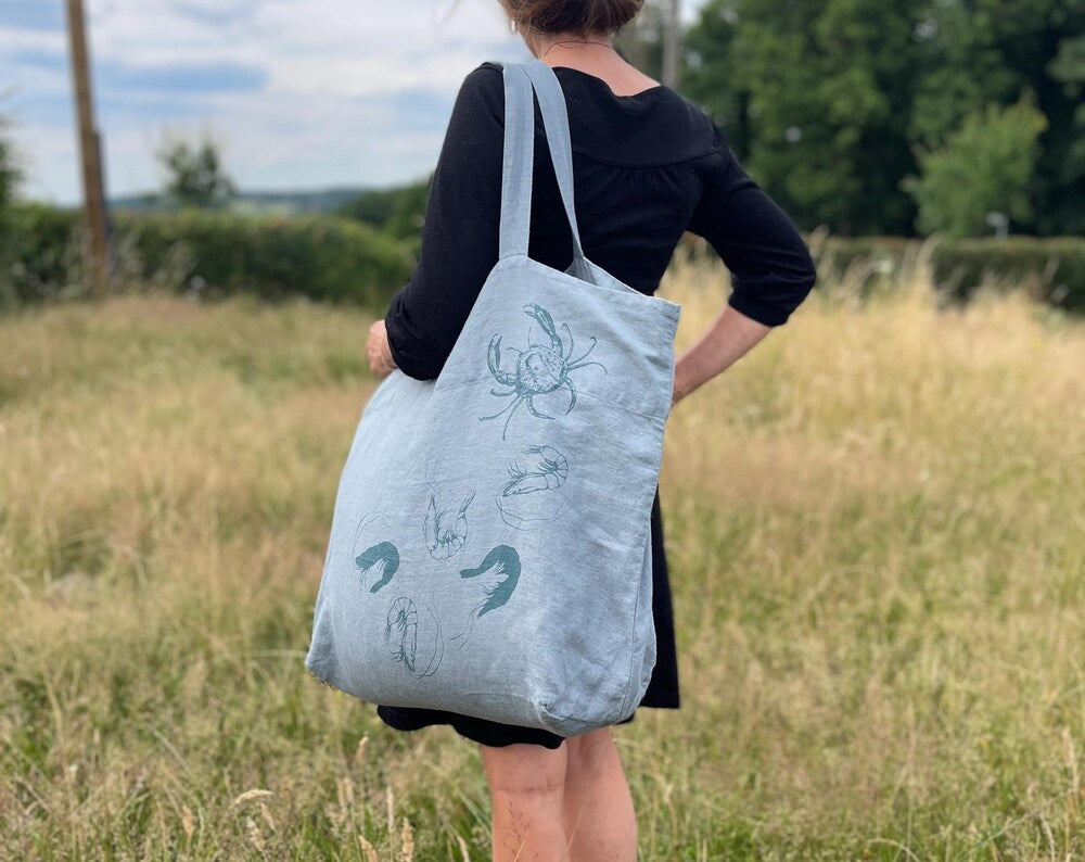 2er Set Leinenservietten für Meeresliebhaber – handbedruckt mit Krabbenmotiv, maritim & nachhaltig, Sommerdeko für Küstenfans, Siebdruck -